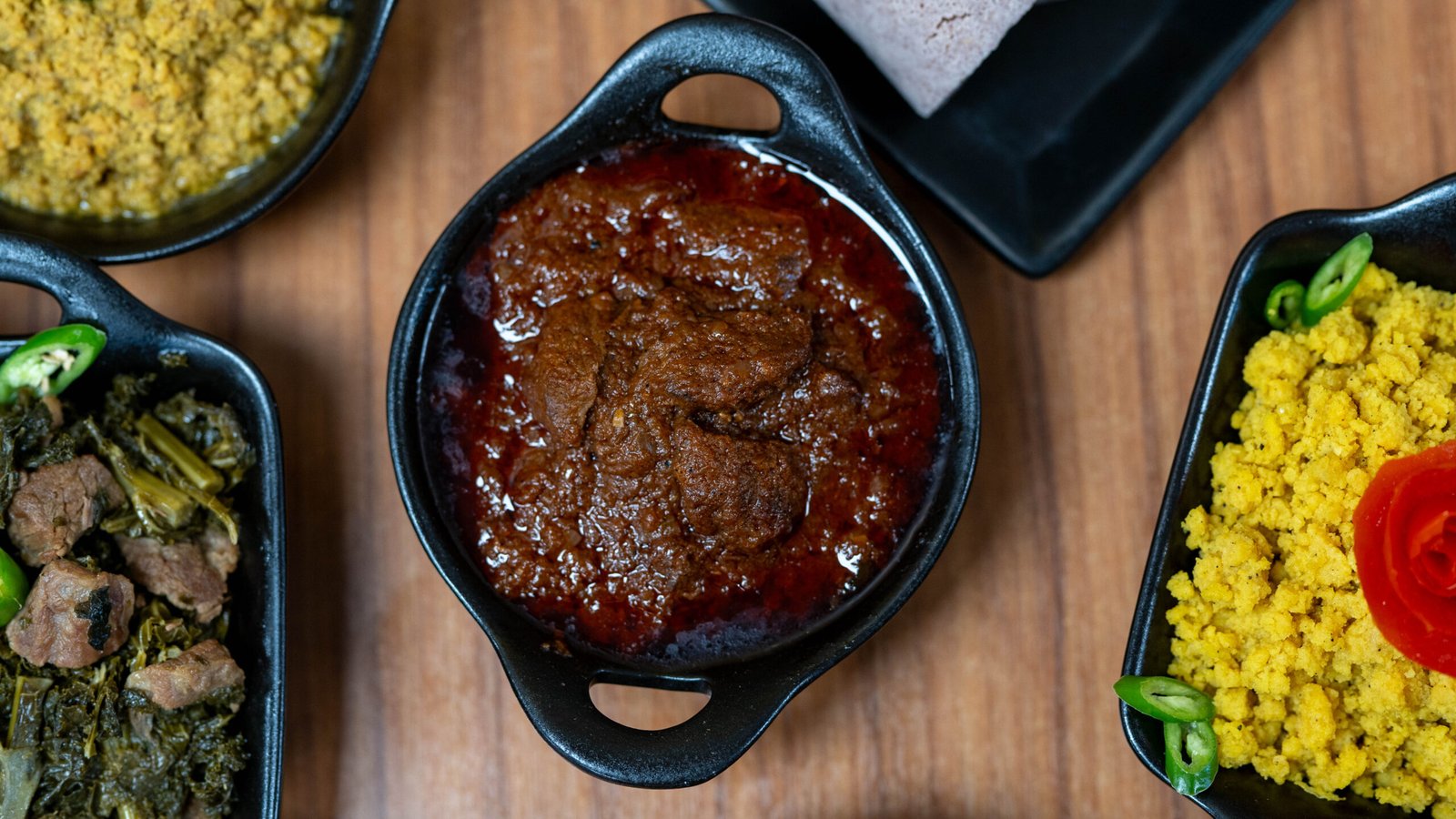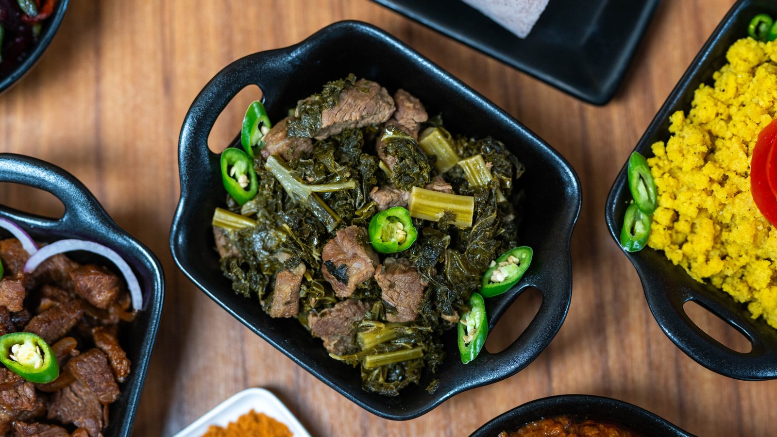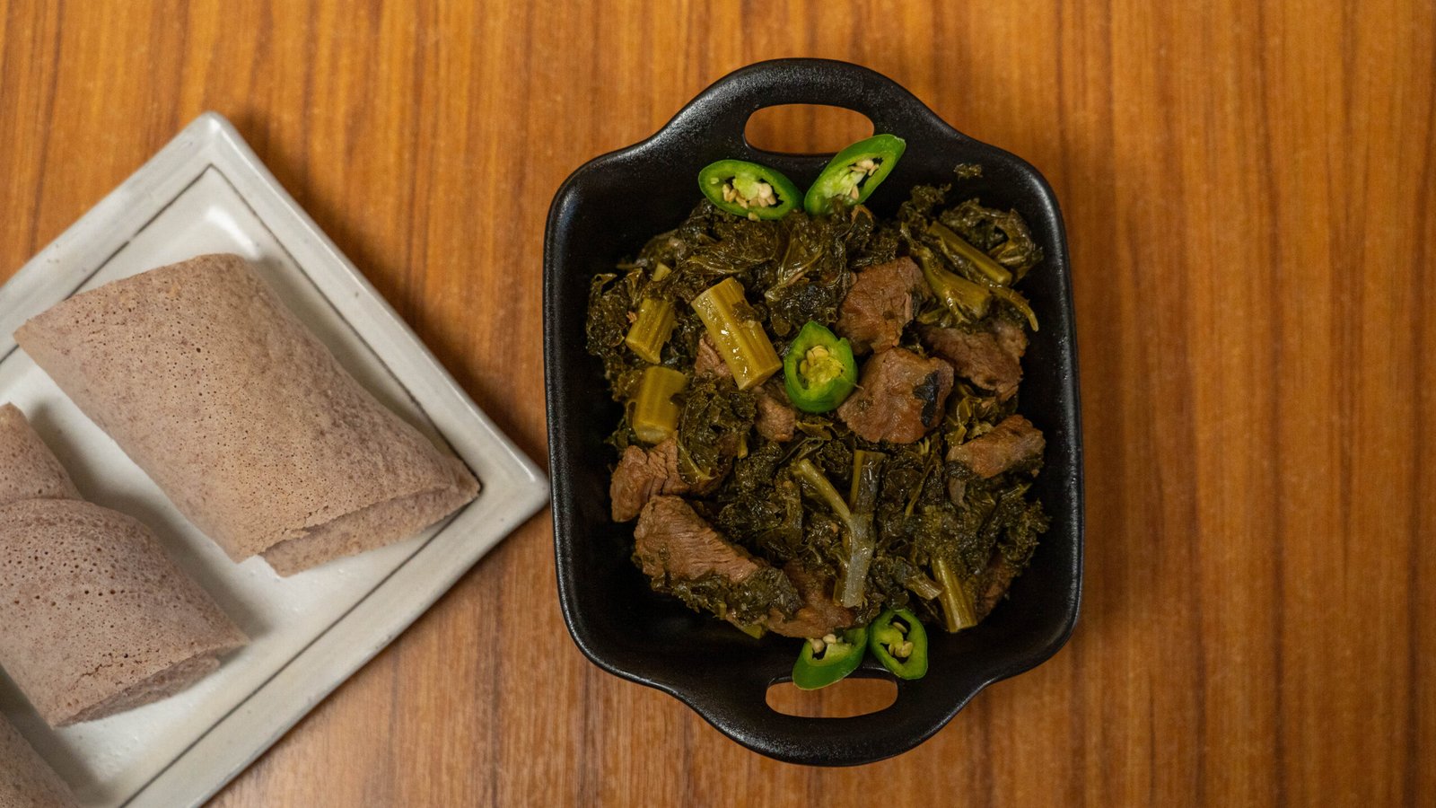 Ethiopian cuisine is a reflection of the country’s deep cultural roots and communal traditions. At the heart of every meal is injera, a soft, sour flatbread made from teff flour, used to scoop up richly spiced stews called wot and a variety of vibrant vegetable dishes. Meals are traditionally shared from a large platter, encouraging connection, conversation, and a true sense of togetherness.