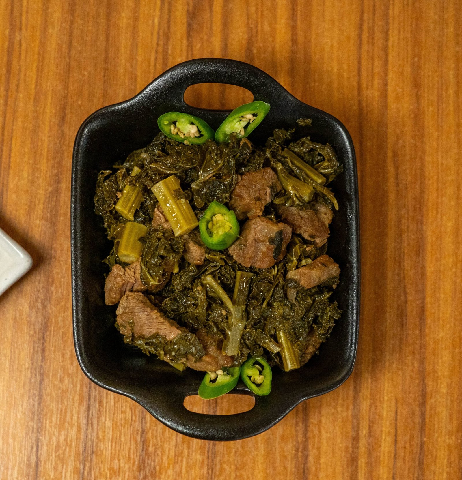 Succulent chunks of mild chuck steak cooked with vibrant kale in a savoury sauce. A dish that beautifully marries hearty meat with earthy greens for a wholesome and delicious experience.